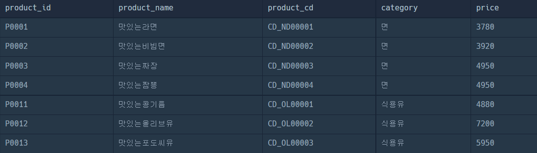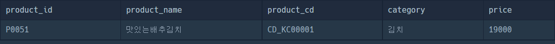 - FOOD_PRODUCT: 식품 정보를 담은 테이블