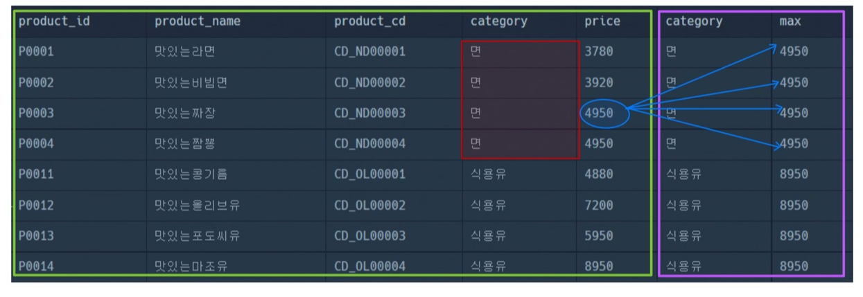 B 테이블은 카테고리별 MAX PRICE를 찾게 설계되어 있습니다.