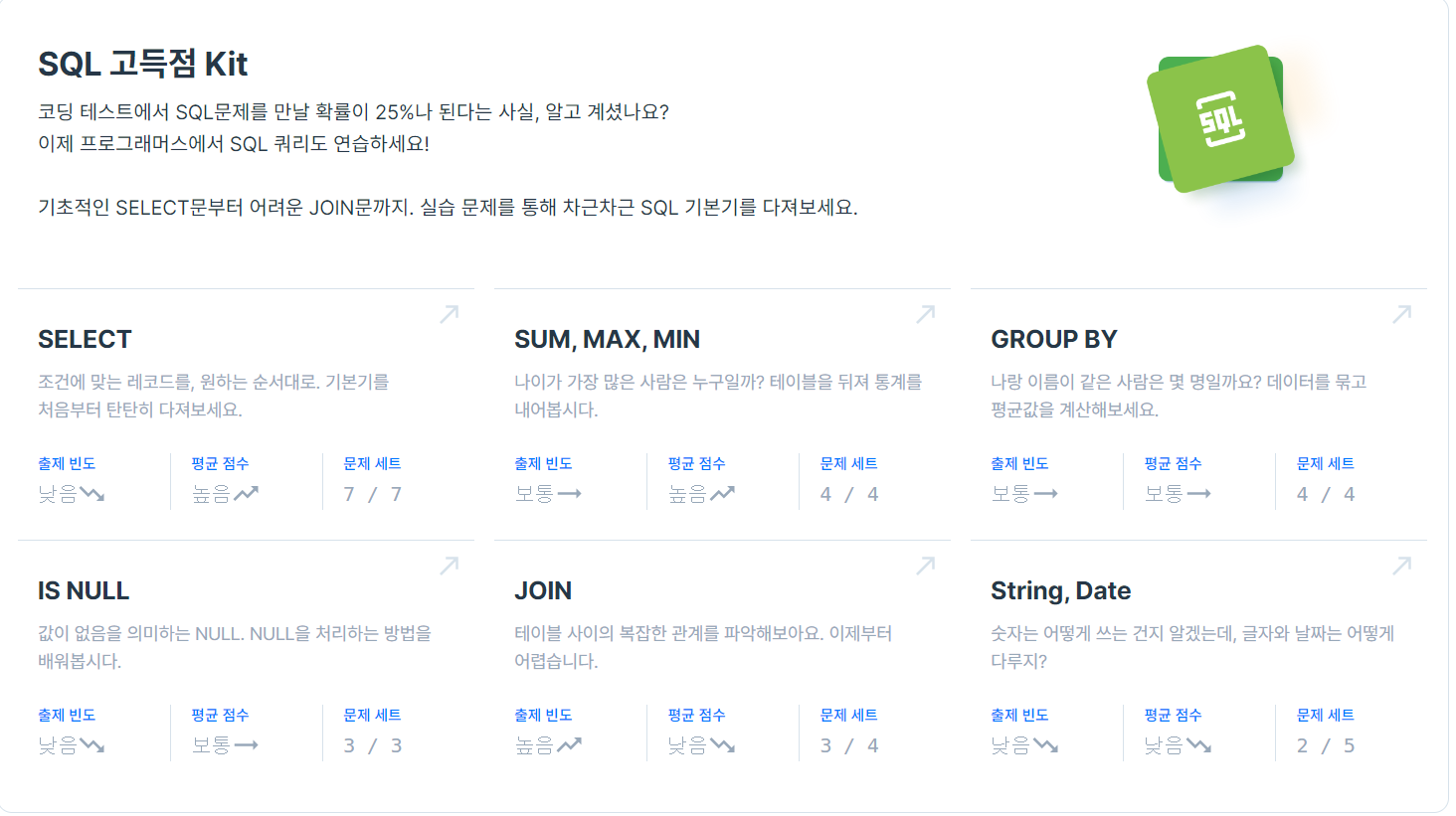 해당 페이지는 프로그래머스의 SQL 문제에 대한 제 풀이 방법을 정리한 내용입니다.