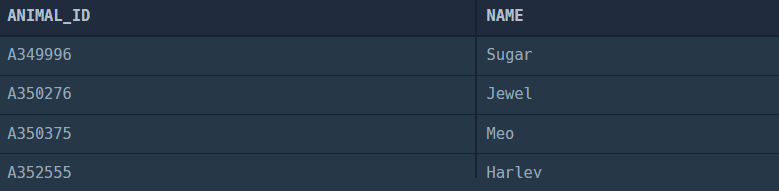 SELECT ANIMAL_ID, NAME